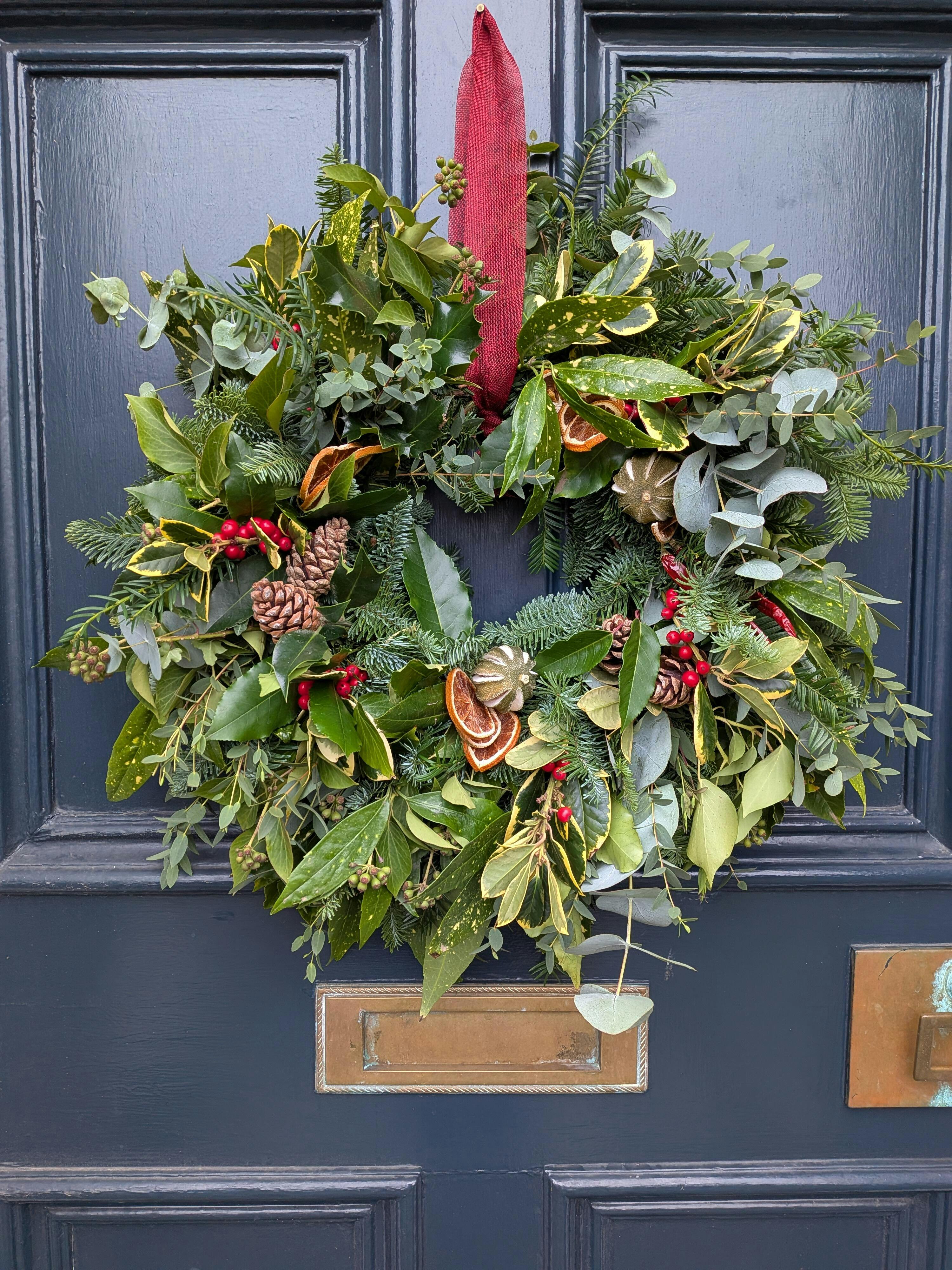 The workshops is a small group, relaxed, creative experience getting you in the mood for Christmas and at the end of the class you will have a unique and beautiful wreath ready for your door, they can also be used as table centre pieces.